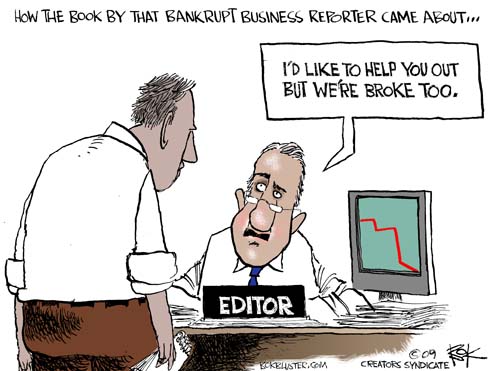 Edmund Andrews went bankrupt. He did it like most people by buying a house he couldn’t afford. The thing is he’s not like most people. He covers the Fed for the New York Times. And unlike most people, his solution to his problem was to write a tell-all book about his problem (here’s the short version in the Times Magazine). But it turns out he didn’t quite tell all. His wife went bankrupt twice before. Yvette Kantrow cuts him no slack in this Huffington Post piece.