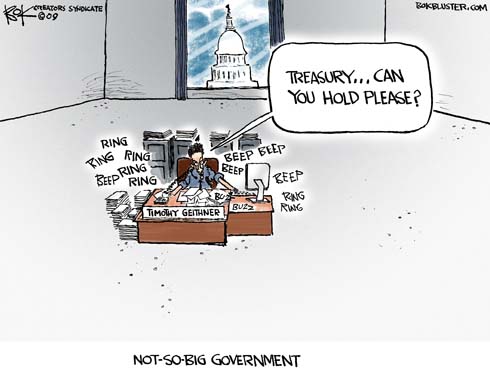 Geithner is playing with one arm tied behind his back.